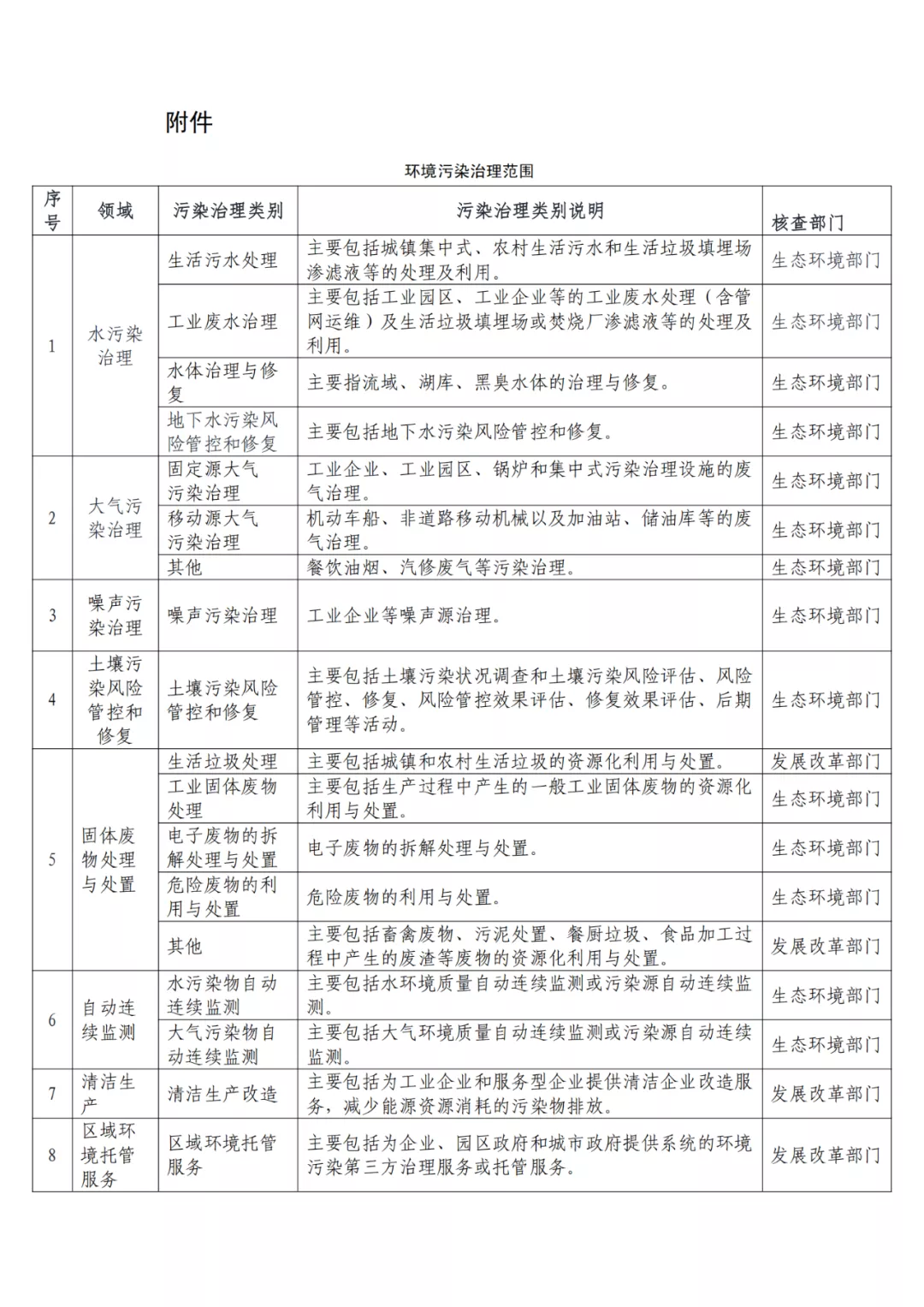 附件:環境污染治理范圍