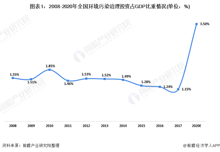 根據(jù)國家統(tǒng)計局?jǐn)?shù)據(jù),全國環(huán)境污染治理總投資從2008年的4937億元增加到2017年的9539億元,年復(fù)合增長率6.81%。雖然我國環(huán)境污染治理投資逐年上升,但截至2017年,我國環(huán)境污染治理投資占gdp的比重僅為1.2%。從國際經(jīng)驗(yàn)來看,當(dāng)環(huán)境污染治理投資占gdp的比例在1%-1.5%時,可以控制環(huán)境惡化的趨勢;當(dāng)比例達(dá)到2%-3%時,環(huán)境可以有效得到改善。根據(jù)《全國城市生態(tài)保護(hù)與建設(shè)規(guī)劃(2015-2020年)》數(shù)據(jù),到2020年,我國環(huán)保投資占gdp的比例不低于3.5%,環(huán)保投資有很大提升空間。